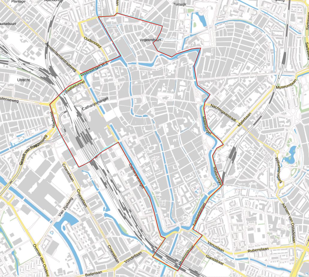 begrensd door Draaiweg, Zeedijk, Bemuurde Weerd Westzijde, Weerdsingel Westzijde, Daalsesingel, Daalsetunnel, Westplein, Croeselaan, Rabostraat, Moreelsebrug, Catharijnesingel, Bleekstraat, Vondellaan, Vondelbrug, Briljantlaan, Albatrosstraat, Albatrosbrug, Abstederdijk, Tolsteegsingel, Maliesingel, Wittevrouwensingel, Weerdsingel Oostzijde, Koekoekstraat, Nieuwe Koekoekstraat en Johannes de Bekastraat tot aan Draaiweg, waarbij ook de grenzen deel uitmaken van het gebied (zie bijlage met kaart 1A);