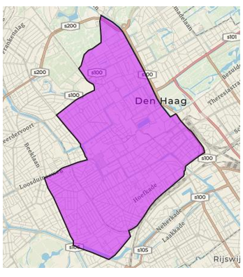 Stadsdeel Centrum: het gebied omsloten door en inclusief de straten: Prinsessegracht, Koninginnegracht, Doctor Aletta Jacobsweg, Kerkhoflaan, Ary van der Spuyweg, Scheveningseweg, Carnegielaan, Laan van Meerdervoort, Koningin Emmakade, Noord-West Buitensingel, Loosduinseweg, De la Reyweg, Veluweplein, Troelstrakade, Fruitweg, Parallelweg, Stationsplein, Spoortracé, Rijswijkseplein, Weteringkade, Lekstraat, Rijnstraat, Koningin Julianaplein en Bezuidenhoutseweg, zoals in het paars aangegeven op de onderstaande bij dit besluit behorende kaart;