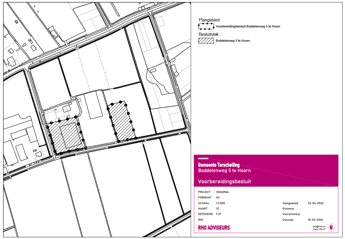 Met het oog op de in voorbereiding zijnde wijziging van het omgevingsplan voor de locatie kadastraal bekend gemeente Terschelling, sectie K, nummer 1379, plaatselijk bekend Boddelenweg 5, een en ander zoals op de kaart in bijlage A nader is aangegeven, voorbeschermingsregels aan het omgevingsplan toe te voegen als bedoeld in artikel 4.14 lid 1 van de Omgevingswet.