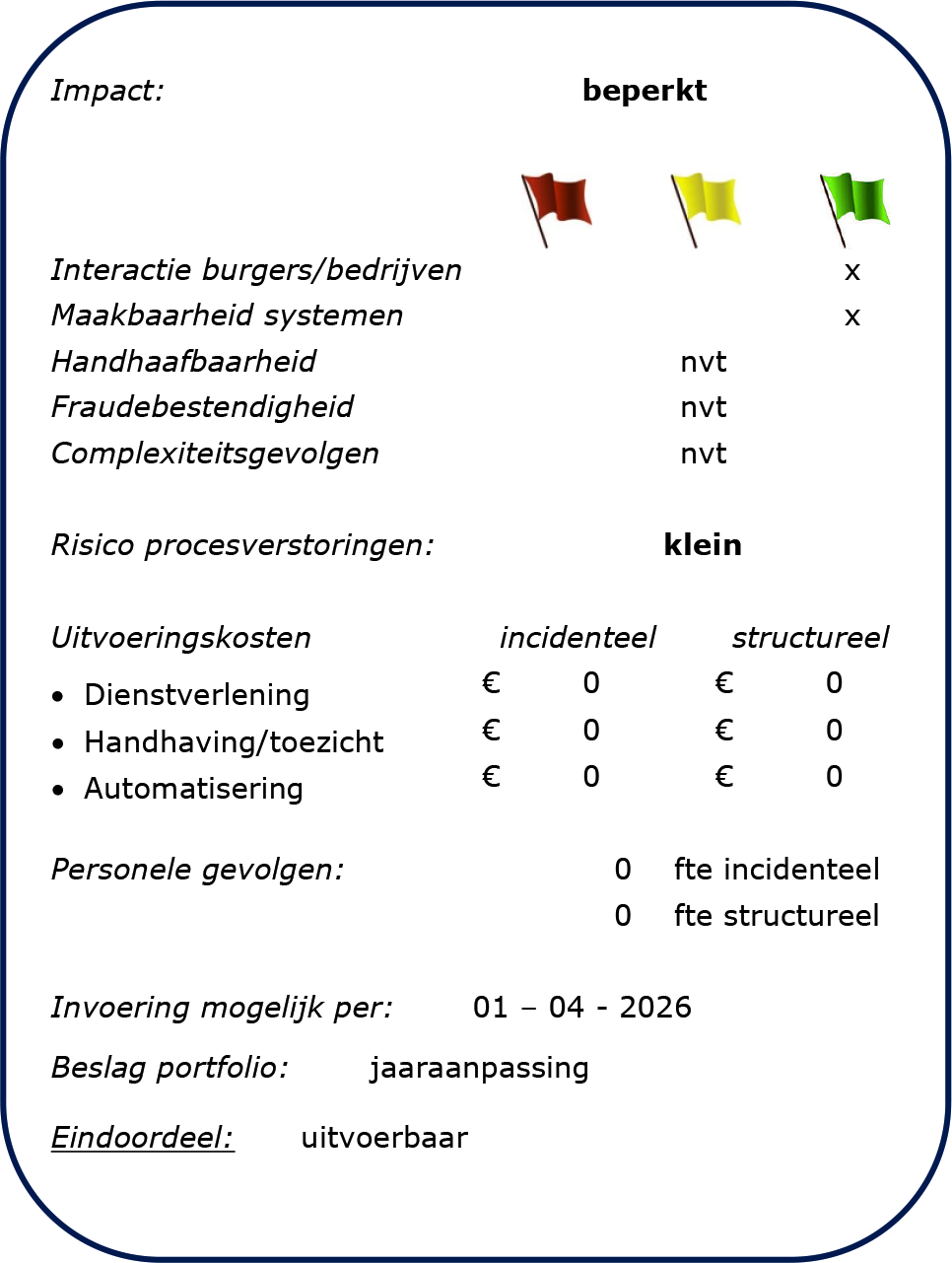 De wijzigingen die in deze regeling zijn opgenomen zijn uitvoerbaar voor de Belastingdienst.
