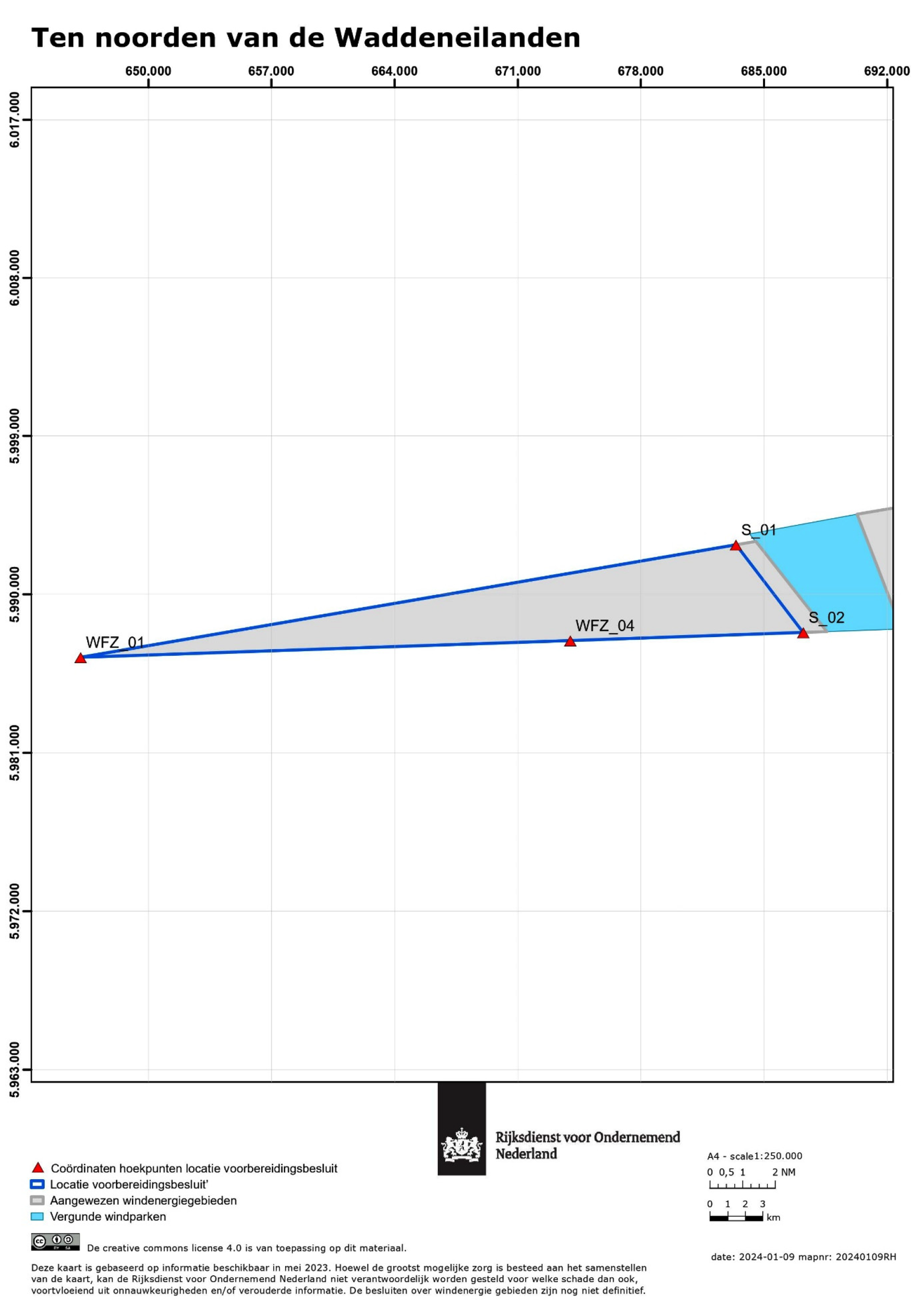 De Wet windenergie op zee voorziet in een integraal wettelijk kader voor het realiseren van windenergie op zee. Onderdeel daarvan is dat de Minister van Klimaat en Groene Groei, in overeenstemming met andere betrokken ministers, binnen de aangewezen windenergiegebieden de zogeheten ‘kavelbesluiten’ neemt. In het kavelbesluit staat waar en onder welke voorwaarden een windpark binnen het aangewezen windenergiegebied gebouwd en geëxploiteerd mag worden. Bij de vaststelling van het Programma Noordzee 2022–2027 is het windenergiegebied Ten noorden van de Waddeneilanden (opnieuw) aangewezen. Windenergiegebied Ten noorden van de Waddeneilanden ligt in de exclusieve economische zone (EEZ). Het gebied ligt op ongeveer 60–70 kilometer uit de kust, en heeft een oppervlakte van in totaal 200 km2. Dit is inclusief het windpark Gemini dat reeds in het windenergiegebied operationeel is, en grenst aan de EEZ van Duitsland. Het voorbereidingsbesluit is van toepassing in de Nederlandse EEZ.